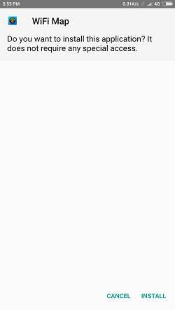 - Select Install and then you shall see that the android device will complete the entire installation process of the Wifi Map apk.